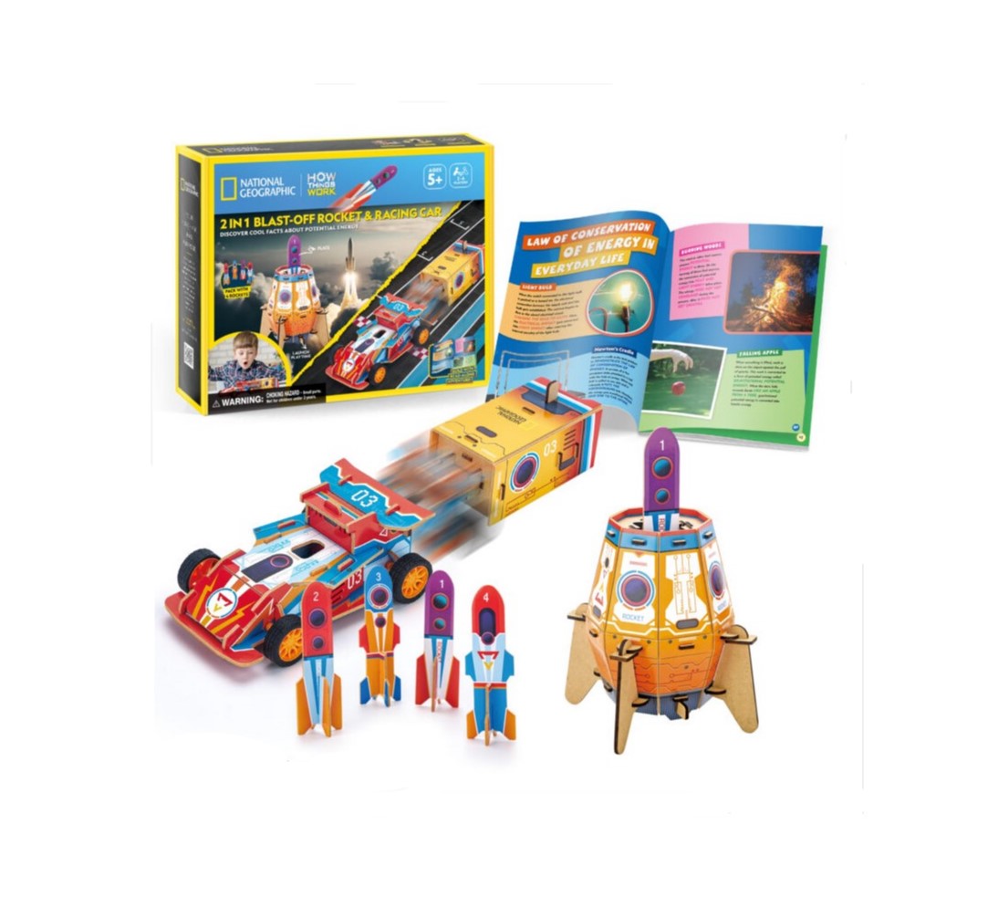 Περιλαμβάνει 2 σετ δραστηριοτήτων: έναν εκτοξευτή πυραύλων με 4 πυραύλους και ένα αγωνιστικό αυτοκίνητο με εκτοξευτή.