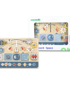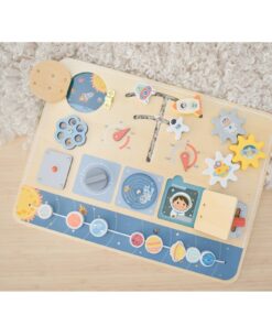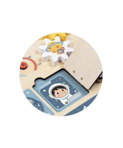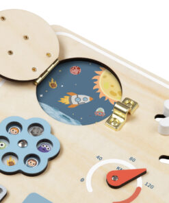 Εκτοξευτείτε σε ένα σύμπαν διασκέδασης με αυτόν τον εκπαιδευτικό πίνακα σχεδιασμένο για μικρούς εξερευνητές. Αυτό το ταμπλό διαθέτει μια σειρά από δραστηριότητες, όπως κουμπιά για ώθηση, μοχλούς για τράβηγμα, γρανάζια για περιστροφή, όλα με φόντο το διάστημα. Με την ποικιλία των δραστηριοτήτων αυτός ο πίνακας προσφέρει ατελείωτη διασκέδαση ενώ, паралелно, βοηθάει στην ανάπτυξη δεξιοτήτων. Βαμμένο σε απαλούς τόνους με μη τοξικά χρώματα εξασφαλίζει ασφάλεια για τις περιπέτειες των μικρών αστροναυτών.