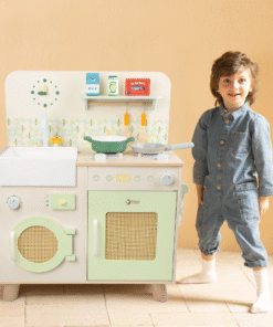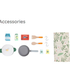 Με αυτή την πολυλειτουργική όμορφη κουζίνα, τα παιδιά μπορούν να ετοιμάσουν νόστιμο φαγητό για την οικογένειά τους. Περιλαμβάνει μια κουζίνα, oven, sink, πλυντήριο και ρεαλιστικά αντικείμενα φαγητού, όπως γάλα, κονσέρβα και χυμό, επιτρέποντας στα παιδιά να βιώσουν την καθημερινή ζωή στην κουζίνα μέσα από μαγειρικές συνήθειες.