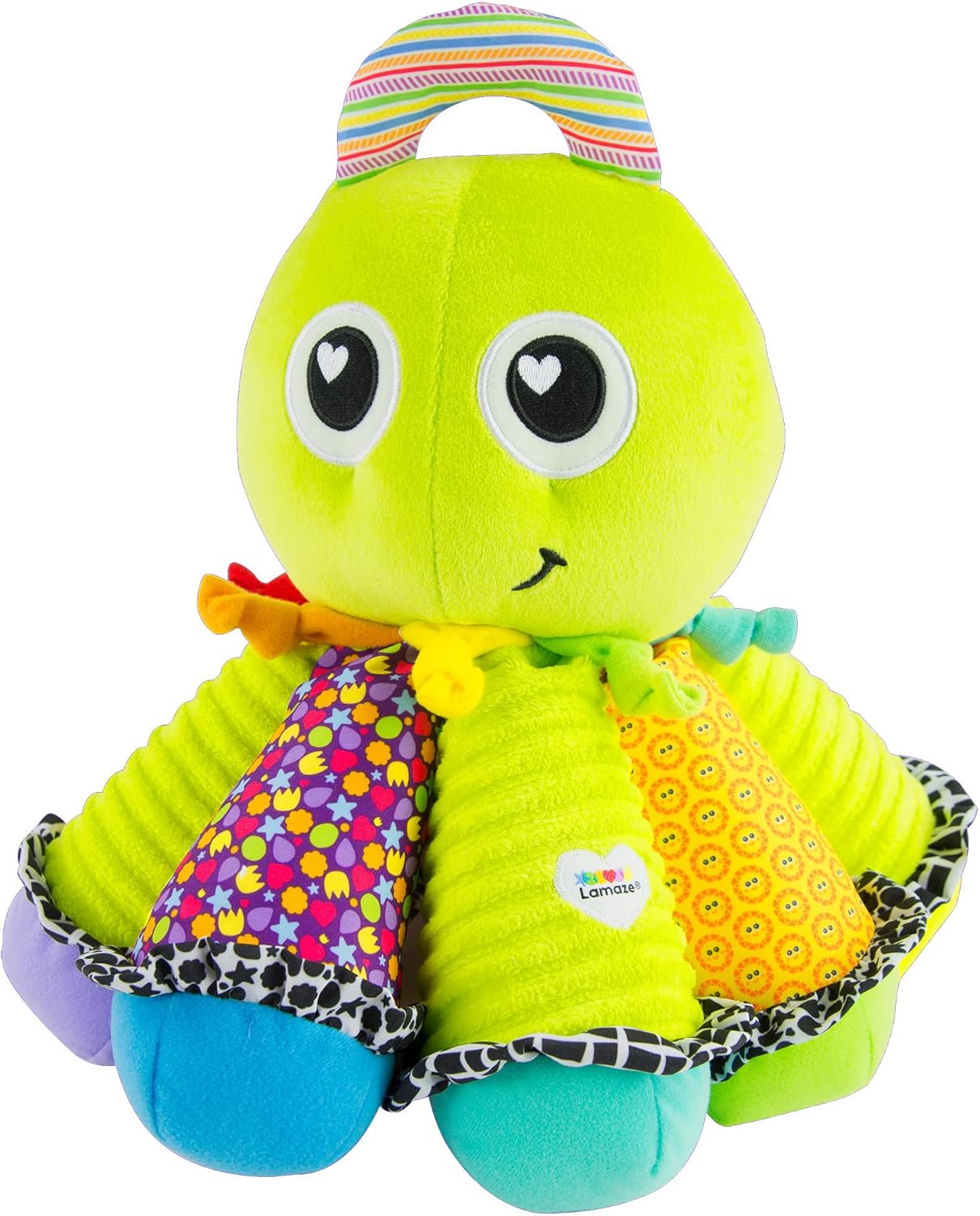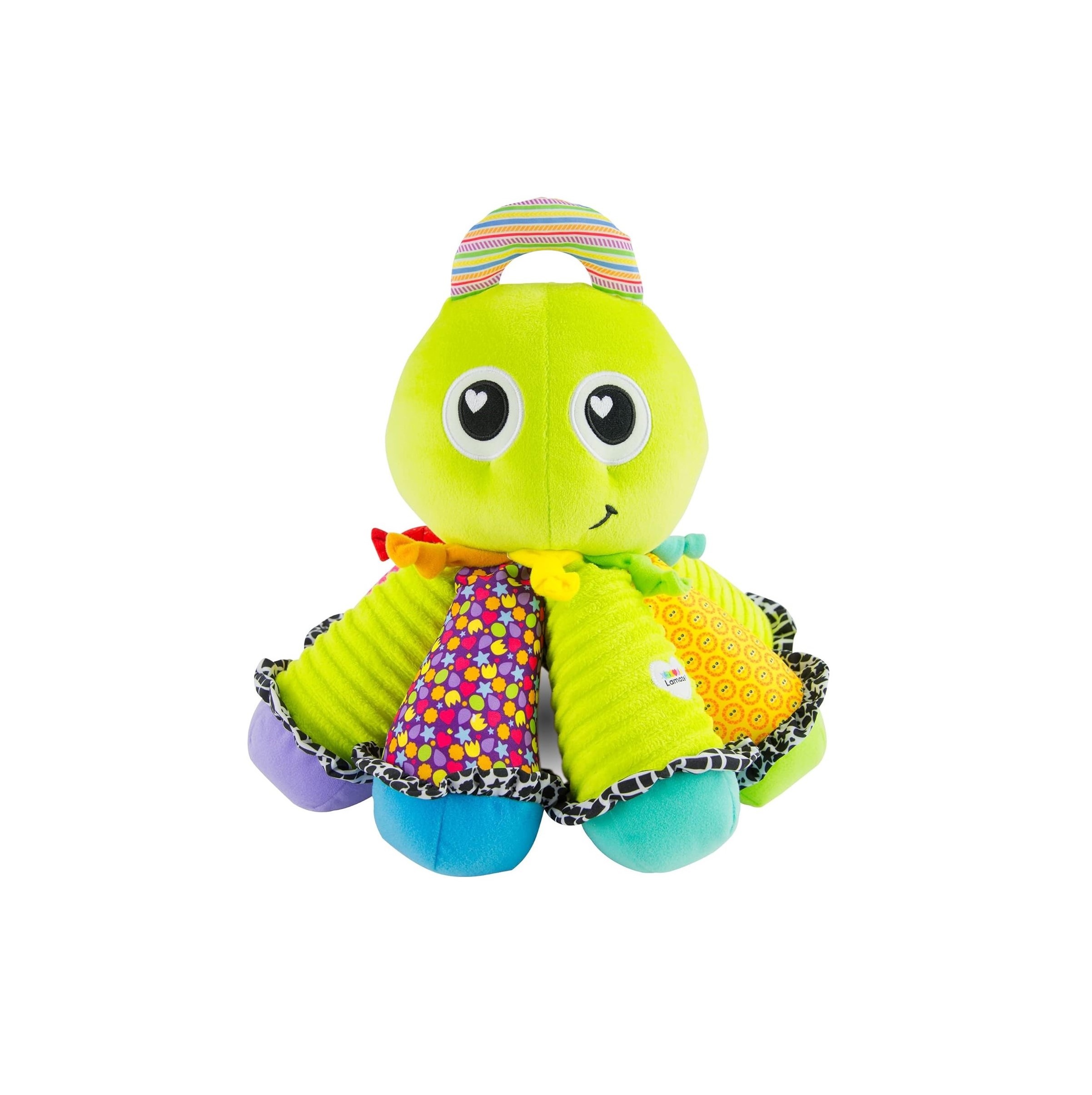 Aktivitätsspiel mit schönem, έντονα χρώματα που προσκαλούν το μωρό να εξερευνήσει και να ανακαλύψει. Das Rasseln & Reiben und viele verschiedene Texturen ziehen die Aufmerksamkeit des Babys auf sich und steigern seine Neugier. Είναι σχεδιασμένο έτσι ώστε να μπορούν να το κρατήσουν μικρά χεράκια με ευκολία και είναι εντελώς ακίνδυνο και στο δάγκωμα! Ο Octotunes έχει 8 ποδαράκια με διαφορετική νότα για να μπορεί το μωράκι να παίξει δική του μουσική.