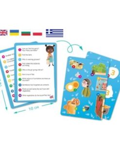 - 2 κάρτες διπλής όψεις με 20 ερωτήσεις στα Ελληνικά για την ανάπτυξη της προσοχής και της λογικής σκέψης