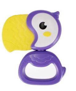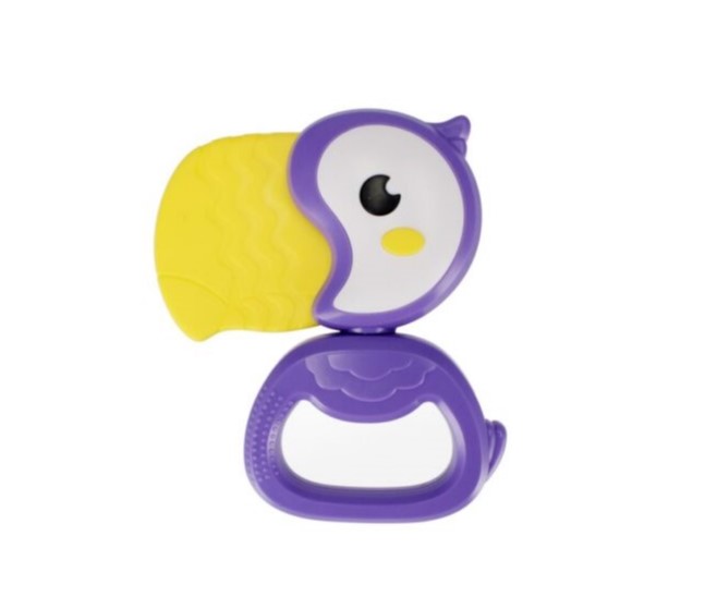TOUCAN RATTLE Σχεδιασμένη για μωρά 3μ+. Με τη μορφή ενός όμορφου τουκάν, σε έντονα χρώματα και με ποικίλες υφές υλικών. Έχει διαδραστικά στοιχεία που ενθαρρύνουν το μικρό παιδί να παίξει, διεγείροντας την ανάπτυξη των αισθήσεων της όρασης, της ακοής και των κινητικών δεξιοτήτων του. Η λαβή εγγυάται εύκολο πιάσιμο και κράτημα της κουδουνίστρας από μικρά χέρια. Το παιχνίδι υποστηρίζει την ανάπτυξη των αισθήσεων της ακοής, της αφής, των δεξιοτήτων των χεριών καθώς και των λεπτών κινητικών δεξιοτήτων.